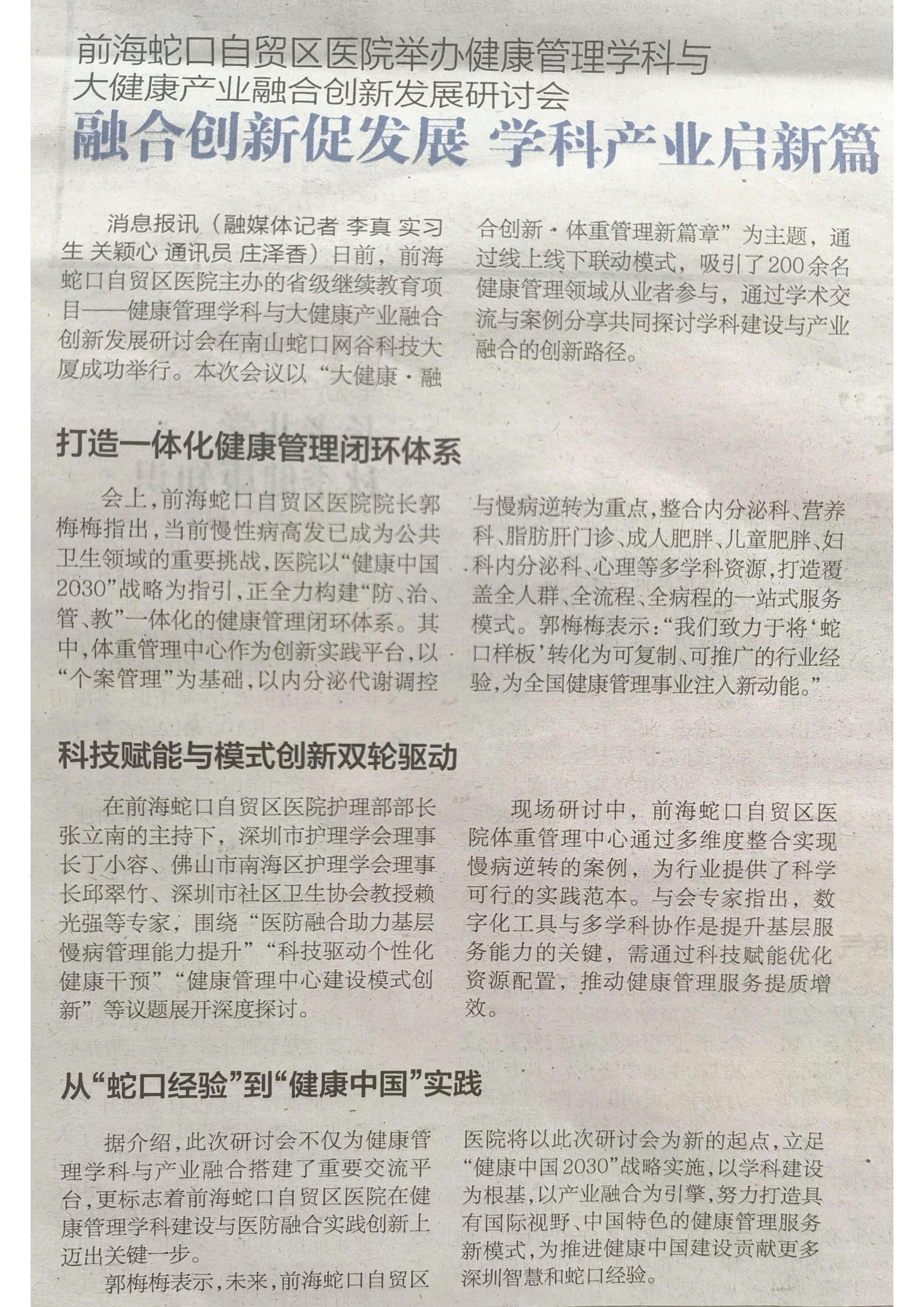 前海蛇口自贸区医院举办健康管理学科与大健康产业融合创新发展研讨会,融合创新促发展,学科产业启新篇(转自蛇口消息报20251015期A08版)