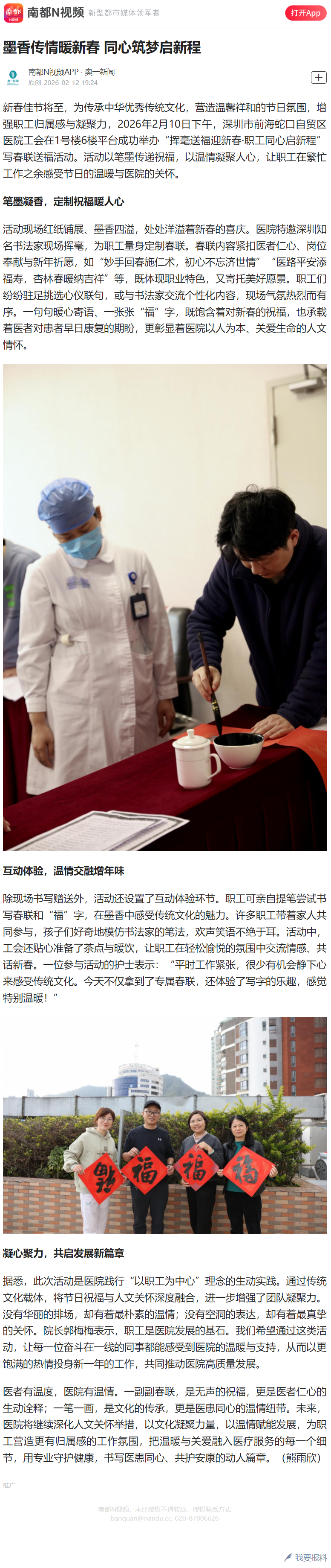 墨香传情暖新春 同心筑梦启新程(转自南都N视频·奥一新闻20260212)
