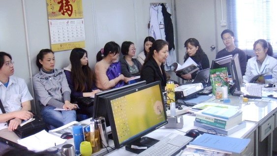 2013年4月13日周六,部分JCI协调员主动放弃休息,到JCI办公室学习模拟评审时专家提出的问题及解决思路,并到临床进行督导,收集存在问题。